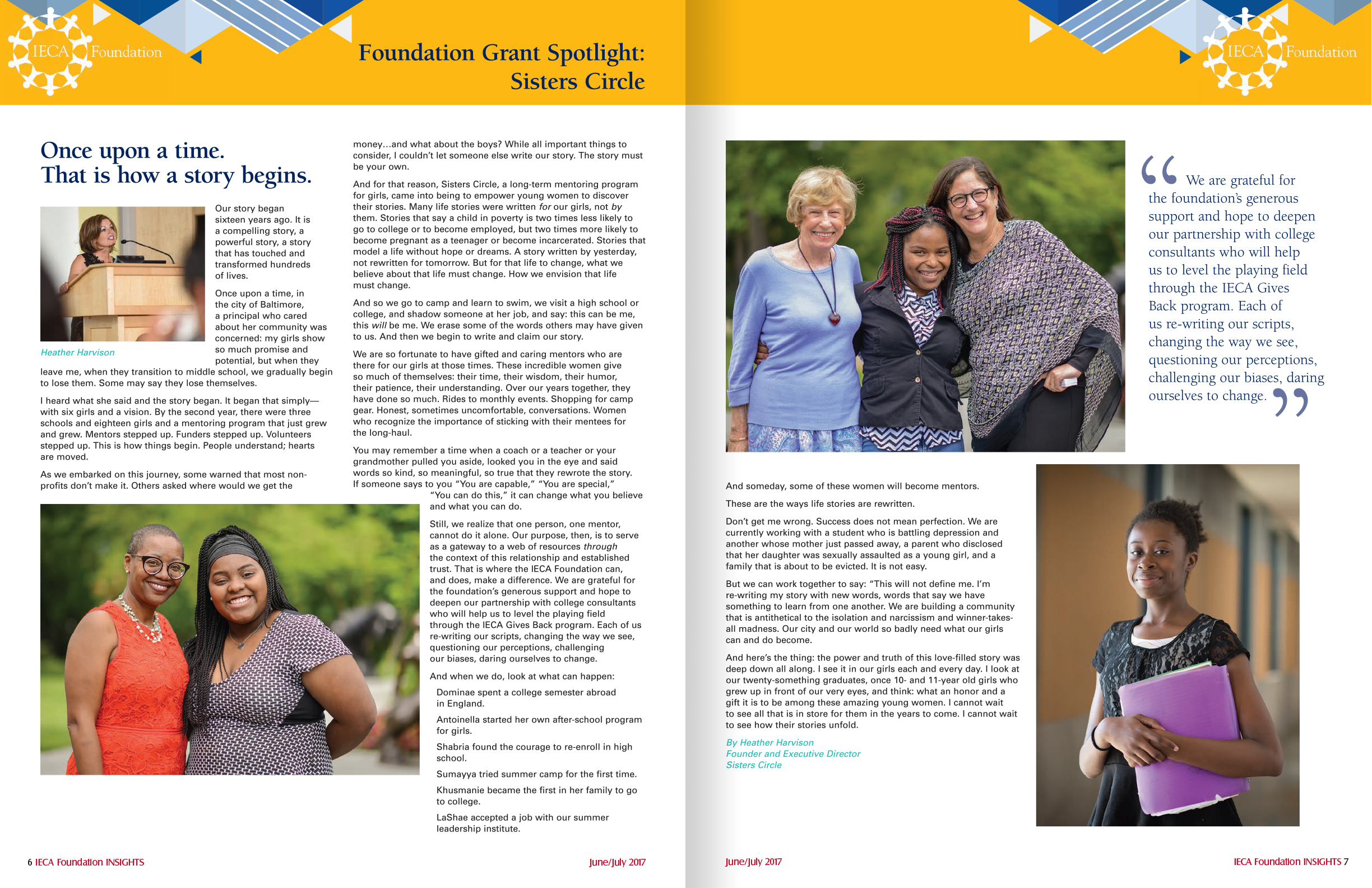 IECA Foundation, July 2017 …each of us re-writing our scripts, changing the way we see, questioning our perceptions, challenging our biases, daring ourselves to change. (Read the entire article here) |
